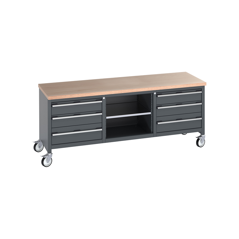 Bott Cubio 2000mm W x 750mm D x 840mm H Mobile Bench 6 Drawers Open Section.