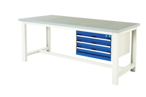 Bott Cubio, braced framework benches. Strong and robust with a variety of optional suspended cabinets and drawer colours. Up to 800kg U.D.L. capacity with a 10-year guarantee. Two width options 1500mm or 2000mm, all benches are 840mm high including worktop.