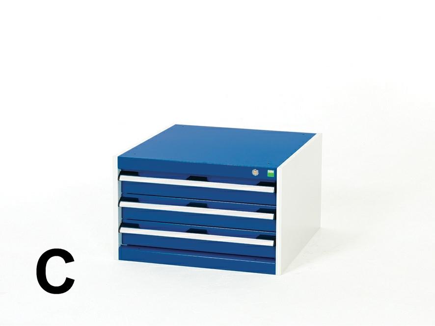 Bott Cubio, braced framework benches. Strong and robust with a variety of optional suspended cabinets with a variety of drawer colours. Up to 800kg UDL capacity with a 10-year guarantee.