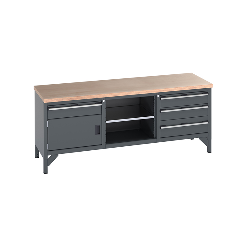 Bott Cubio 2000mm W x 750mm D x 840mm H Storage Bench, 1 Cupboard, 4 Drawer Open Section.