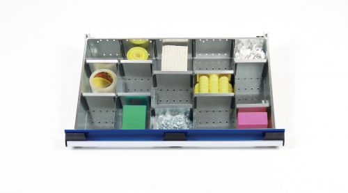 Bott Cubio metal dividers for 525mm wide x 525mm deep drawers (400 x 400 internal). They come in a range of different compartment configurations to suit your specific needs. All parts are adjustable to allow for even greater flexibility to adapt or amend for a particular job in mind.
