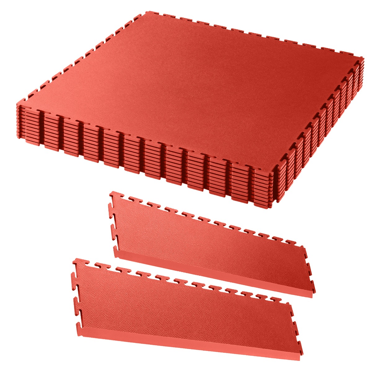 EvoTile professional smooth garage tile in Red 13 square meters with 5 ramps kit.