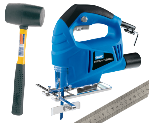 For easier and quicker tile laying, this kit consist of a good quality 800W jigsaw, 2lb rubber mallet with glass fibre handle and a 1 metre steel rule. Many DIY uses after tile laying.