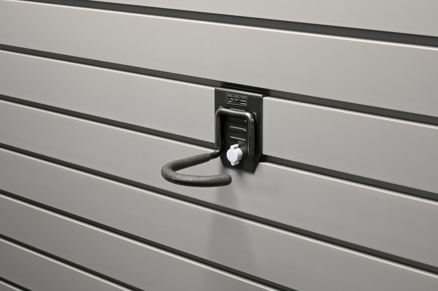 EVOPanel™ Bike Hook - for supporting bikes perpendicular to the garage wall. Several bikes may be stored side-by-side in this manner.