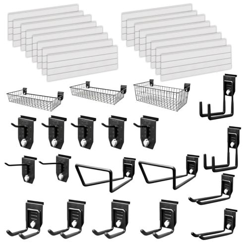 A twist lock mechanism secures your hooks and baskets to the wall panels.
