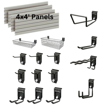 Garage Wall Storage EVOPanel™ Kit - 22 Accessories EP163A pre-prepared kit of 16 x 4ft (1220mm) or 8 x 8ft (2440mm) heavy duty panels to cover an area of 6.05m² with 22 accessories.