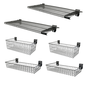 Garage Basket and Shelf Wall Storage Kit EVOPanel™ Kit - 6 Accessories EP165A pre-prepared kit 6 accessories Baket & Shelves.